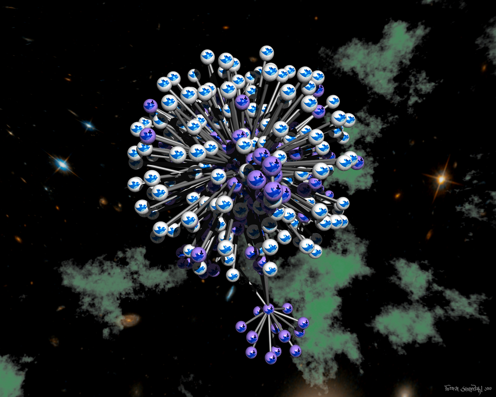 Ray-traced visualization of a viral marketing simulation on part of the Twitter network. (full size)