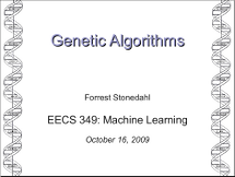 Lecture slides about genetic algorithms, from the machine learning course.